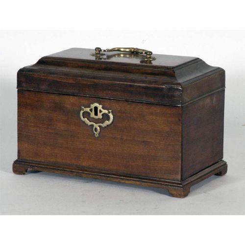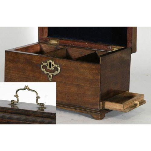 GEORGE III MAHOGANY TEA CADDY with secret compartment 9"x6"x5" late 18th century CONDITION REPORT: small replaced piece 3/4 inch square at right front of lid. PACKING AND SHIPPING: We offer packing (double boxed in most cases) and shipping of this item within the Continental United States by USPS or UPS (our choice- boxes over 30lbs or oversized may be recalculated based on buyer's location), NOT INCLUDING INSURANCE (it will be added when we know the sales price) for $30
