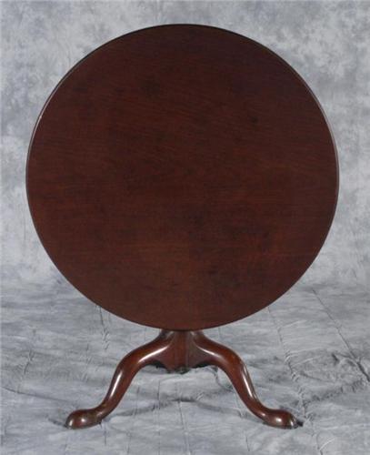 GEORGE III MAHOGANY TEA TABLE, 37 1/2" diameter, 28 1/2" high, 18th century, condition: good repair to crack at bottom of standard, SHIPPING: See recommended third party shippers. This item can't be packed or shipped by seller.