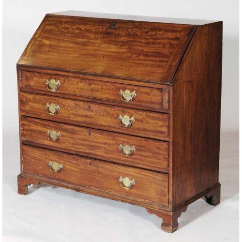 1 GEORGE III SLANT FRONT DESK with fitted interior late 18th century CONDITION REPORT: replaced pulls, good color, replaced screw for hinges.