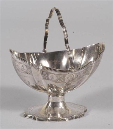 GEORGE III STERLING SUGAR BASKET, 6" across, 4 3/8" high excluding handle, hallmarked Peter & Ann Bateman London, 1795, 251 grams, CONDITION: excellent, few minor dings, PACKING AND SHIPPING BY FAIRFIELD AUCTION WITHIN CONTINENTAL USA (excluding insurance) $30,