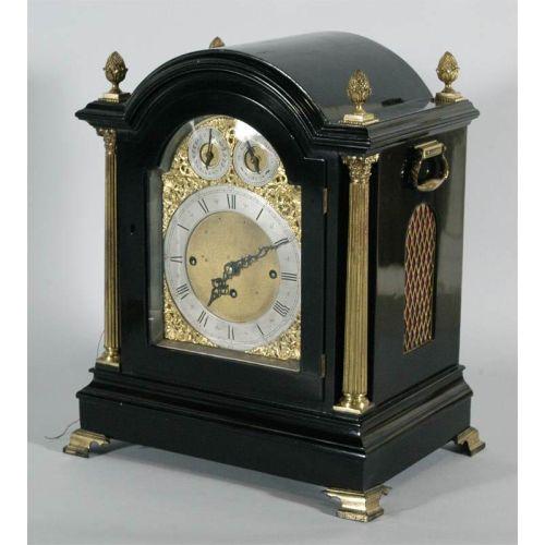 GEORGE III STYLE BRACKET CLOCK signed Camerer, Cuss & Co., London triple fussee movement with repeater cord, 19" high, late 19th century CONDITION REPORT: no problems.