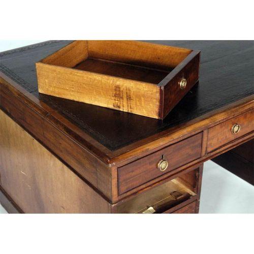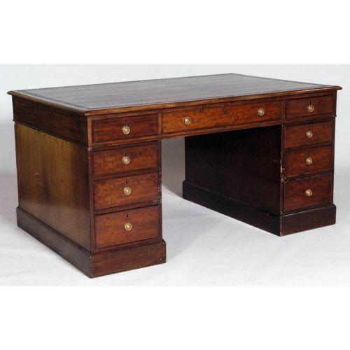 GEORGE III STYLE MAHOGANY PARTNER'S DESK with original embossed leather top, 39"x 60"x 31" high, late 19th century CONDITION REPORT: roughness at kneehole opening, veneer chips, finish fading on side.