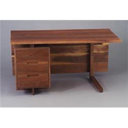 GEORGE NAKASHIMA single pedestal walnut receptionist's desk with three drawers, privacy screen, a...