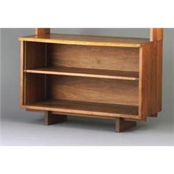 GEORGE NAKASHIMA walnut open bookcase with dovetailed case, one free-edge, and one interior shelf. 32" x 48" x 22" $3,000 - 4,000