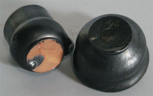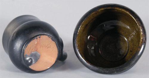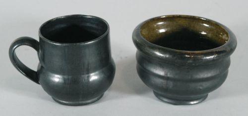 GEORGE OHR POTTERY, VASE 5" diameter, 3 1/2" high and MUG 3 5/8" high both signed, both with gun metal glaze, CONDITION: minor glaze imperfections typical to Ohr. PACKING AND SHIPPING BY FAIRFIELD AUCTION WITHIN CONTINENTAL USA (excluding insurance) $30,