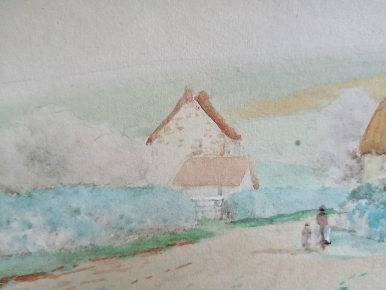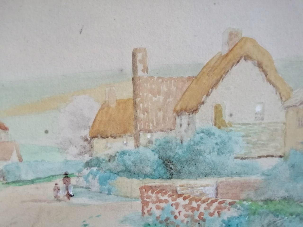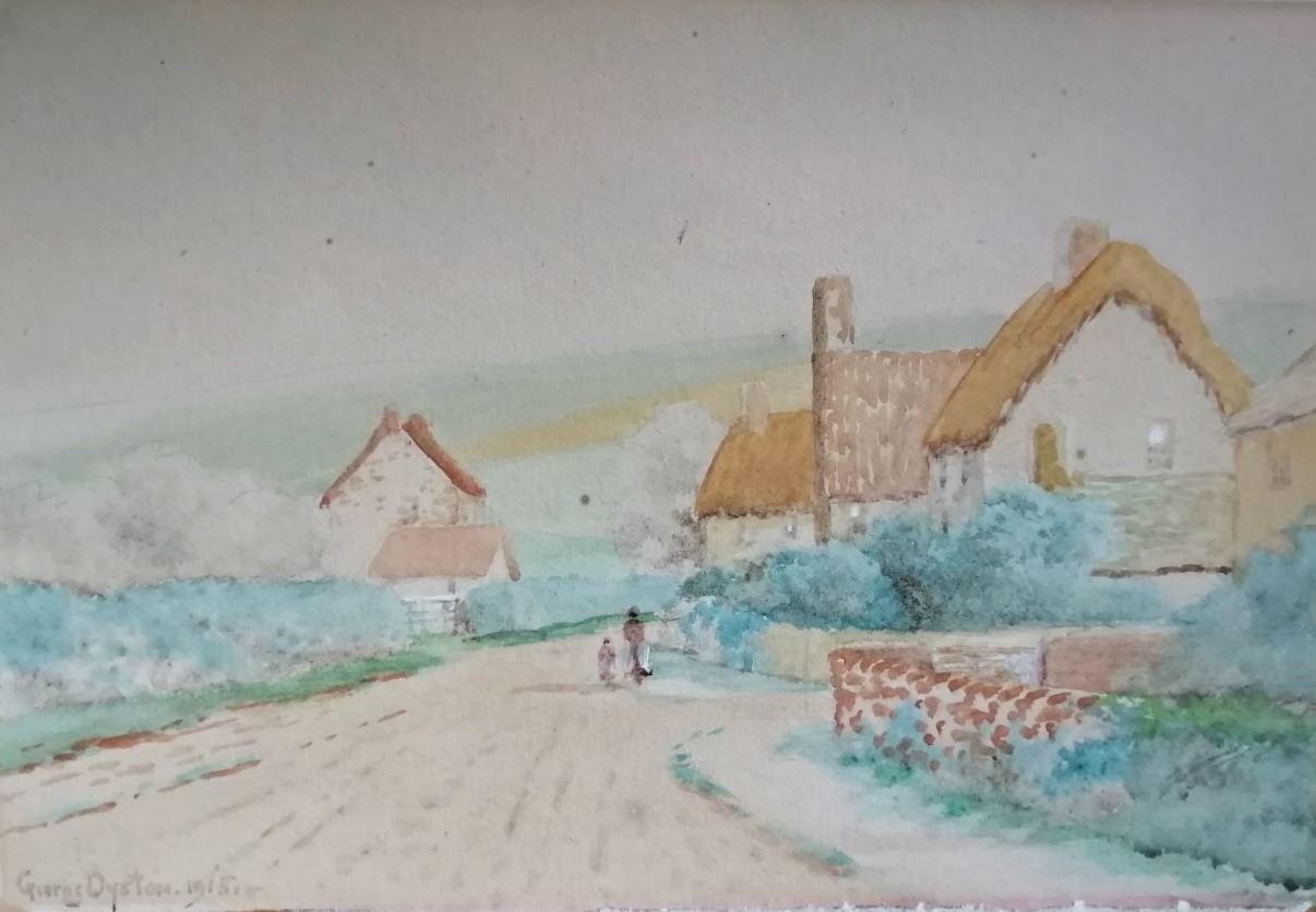 A watercolour of houses in Stoughton, village and civil parish in the District of Chichester in West Sussex, England.