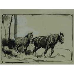 GEORGE SOPERTWO HORSES DRAGGING TIMBERwatercolour, initialled in pencil. 6 1/2" x 9" (16 x 23cm) Est.100/150