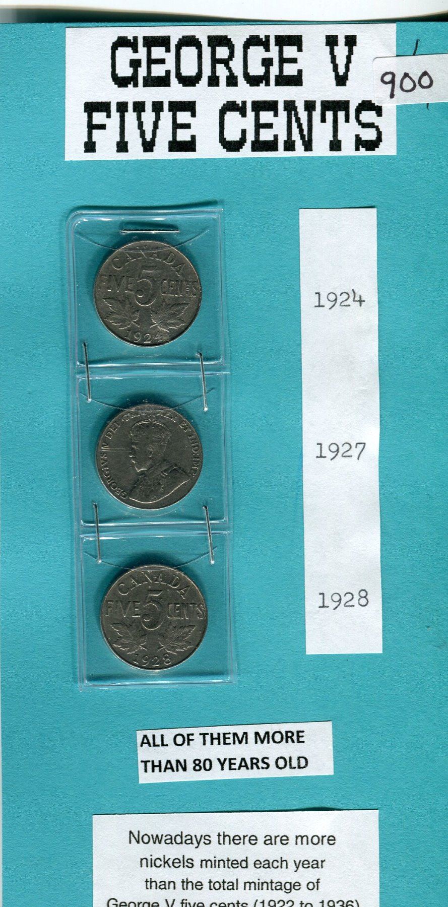GEORGE V 5 CENT COINS. 1924, 1927, 1928