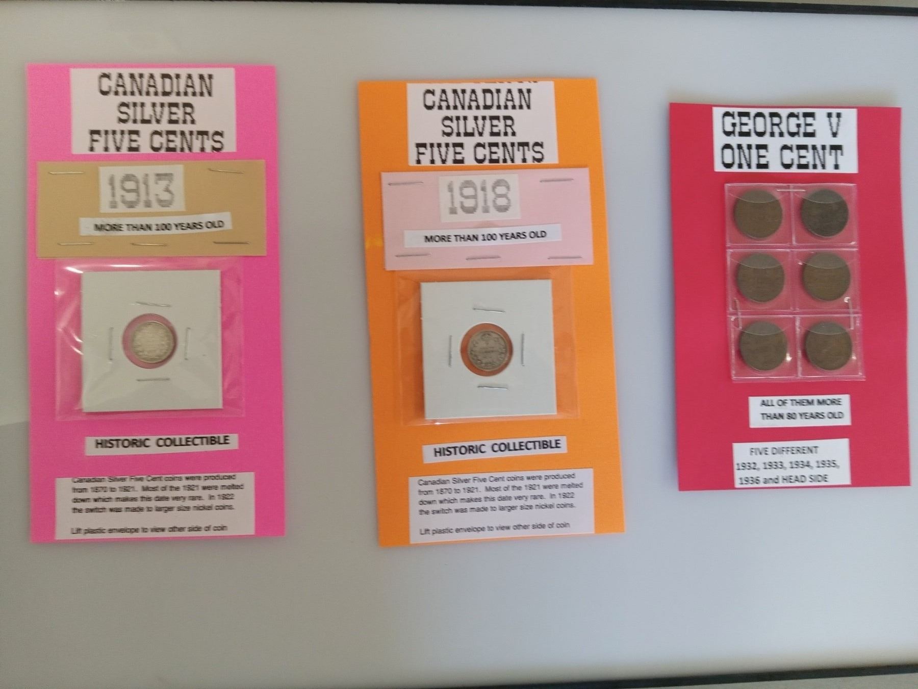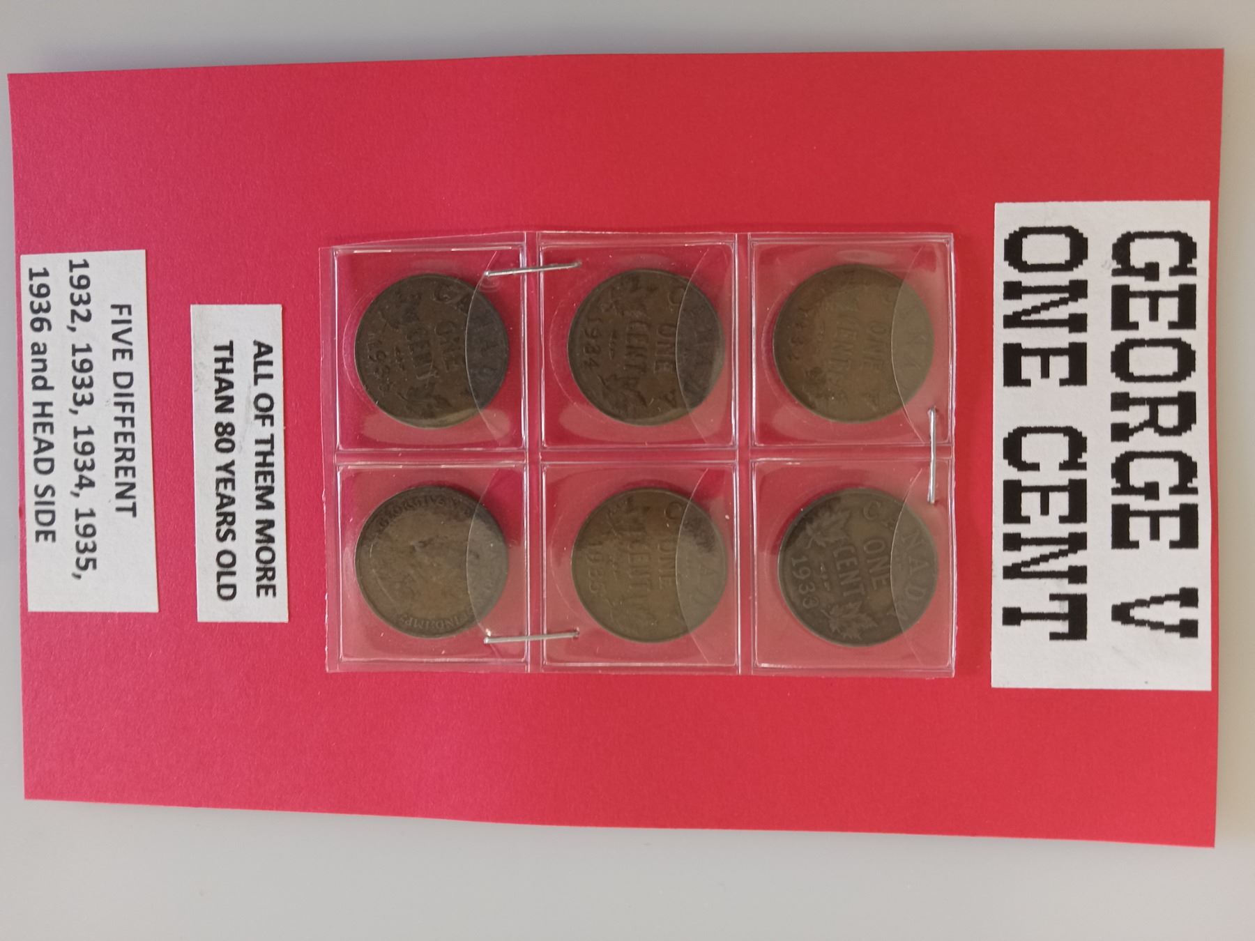 GEORGE V 6 - .01 ¢ (ONE cent)- SHOWS HEADS & TAILS (1932 - 1936); CANADIAN 'SILVER' .05 ¢( *RARE*1913); CANADIAN 'SILVER' .05 ¢(*RARE*1918)