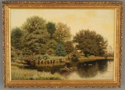 1 GEORGE W. DREW 14"x20" o/c, signed lr boat on a pond estimate 1000-1500