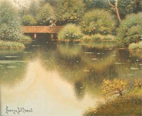 1 GEORGE W. DREW 23"x30" o/c "The Old Homestead" signed ll, labeled verso, excellent estimate 2000-3000