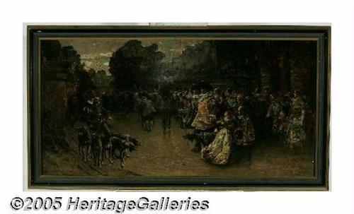 <B>GEORGES JULES VICTOR CLAIRIN (French )</B></I><BR>Don Quixote<BR>Oil on panel<BR>23.5in. x 47.25in.<BR>Signed lower left<BR><BR>Condition Report: Old discolored varnish, overall very good condition.<BR><BR>David Dike: Agree with description, condition and value estimate.<BR>Brian Roughton: No comment. Not familiar with work. I find the printing odd.<BR>