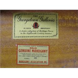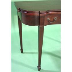 MAHOGANY GEORGETOWN GALLERIES FLIP-TOP CARD TABLE. Serpentine front with dovetailed drawers. Marked with label on inside of drawer. 31" H, 36" W, 18" D