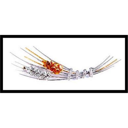 This stunning brooch is of 18K solid gold. 20 marquise natural diamonds of white and yellow color are accented by 22 additional diamonds (3.5 carats combined). The range is H-I color and fancy yellow, and Si1 clarity. It measures 3 ½ inches long. Weight is 11.5 grams.