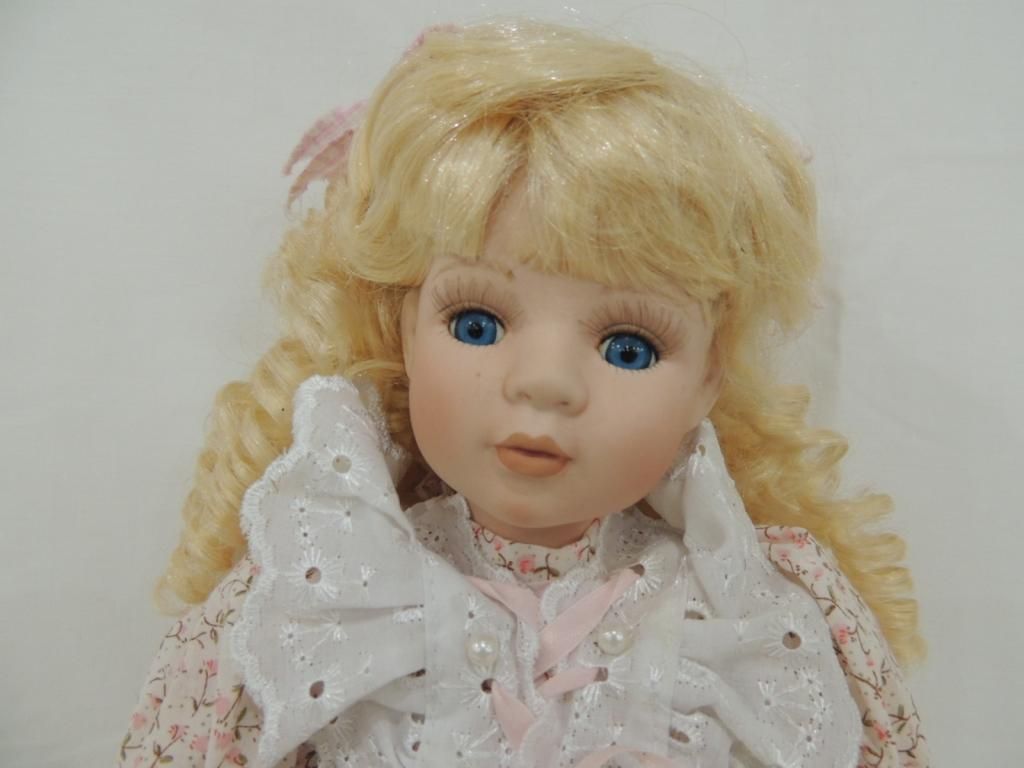 GEPPEDDO PORCELAIN DOLL GOLDIE LOCKS DOLL WITH THREE LITTLE BEARS IN APRON.