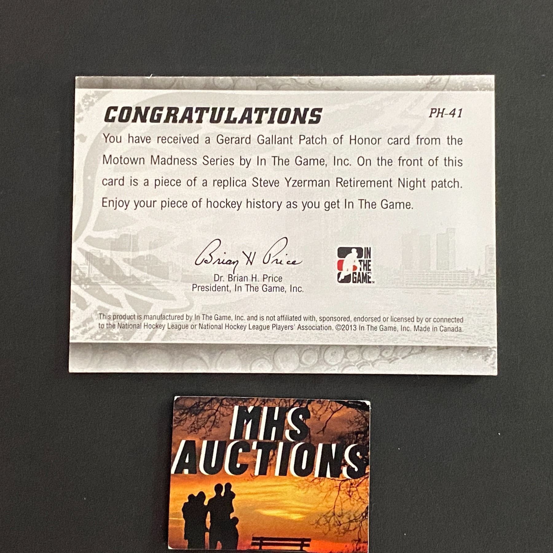 GERARD GALLANT 2013 IN THE GAME PATCH HOCKEY CARD