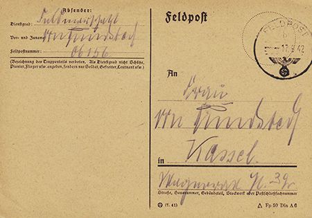 (1875 - 1953) German field marshal who led the blitzkrieg attack on France, seizing the country within two weeks, defeated by Allied forces in Normandy and in the desperate Battle of the Bulge. Scarce war-date A.L.S. "Gerd" and also signed "Feld Marshall von Rundstedt" and "von Rundstedt" on the face, a Feldpost postcard sent to his wife, Sep. 16, 1942, in pencil. Untranslated.