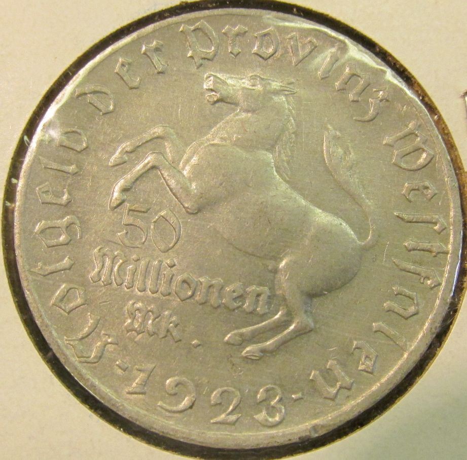 GERMAN 1923 5O MILLION MARKS COIN "NOTGELD- EMERGENCY MONEY"