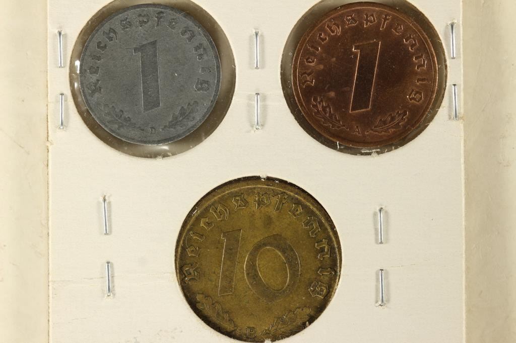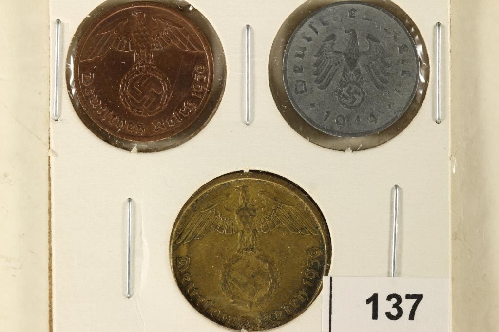 (ZINC) AND 1939 10 PFENNIGS (BRASS) ALL WITH SWASTIKAS