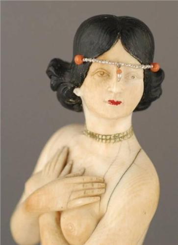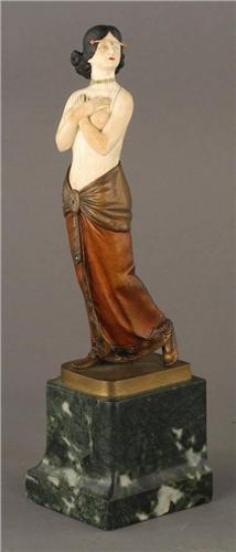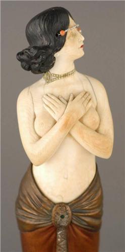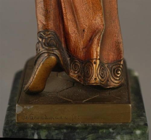 1 GERMAN ART DECO BRONZE FIGURE OF A PARTIALLY NUDE DANCER signed B. Grundmann 12"h overall, 9" figure circa 1930, excellent with normal hairlines on head estimate 1000-1500