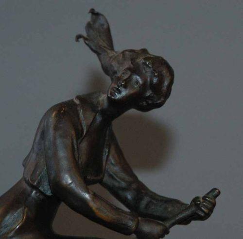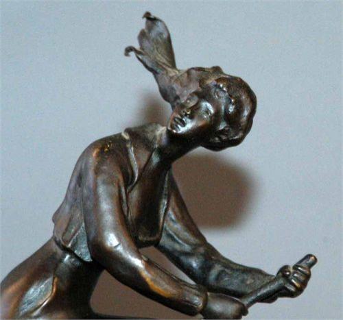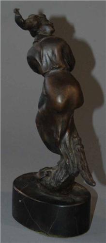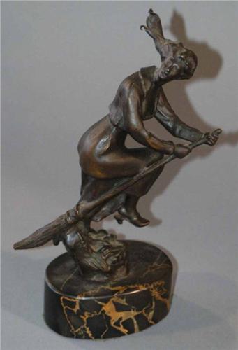 "GERMAN BRONZE FIGURE OF A WITCH with her broomstick 9 1/4"" high, excellent circa 1930 packing and shipping (excluding insurance) $30"
