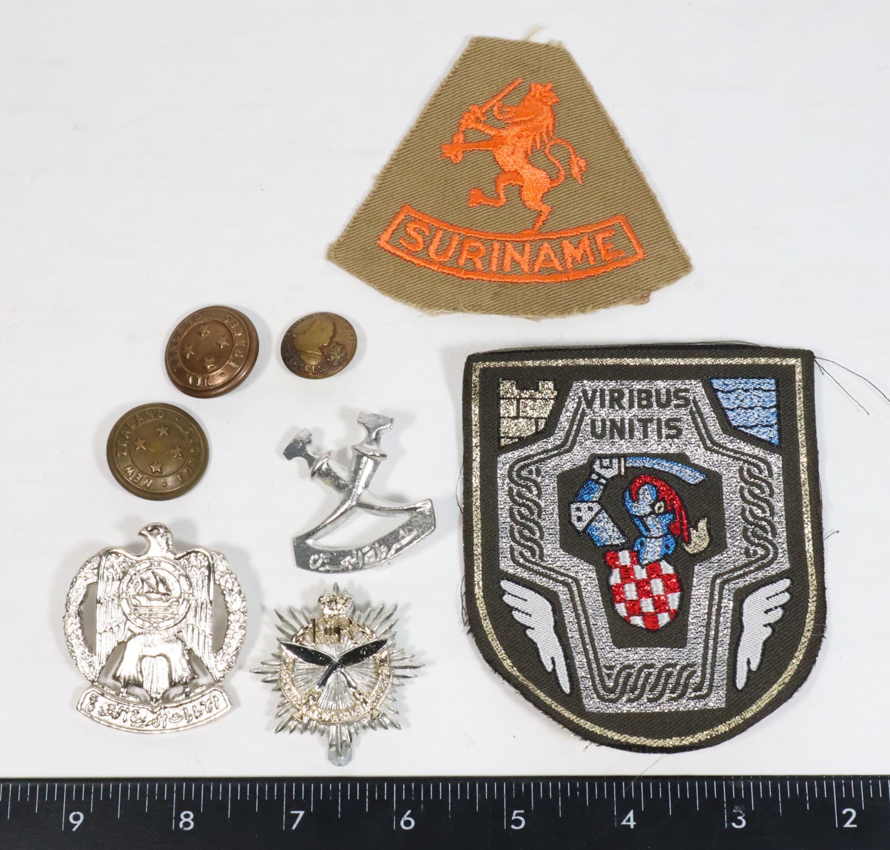 INSIGNIA SOLD WITH WW1 WW2 AUSTRALIA NEW ZEALAND BUTTONS, CAP BADGE LOT MIDDLE EASTERN ARABIC DESIGN AND DUTCH CLOTH PATCH INSIGNIA SURINAME