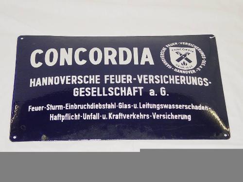 GERMAN ENAMEL FIRE INSURANCE SIGN "CONCORDIA" (19 1/4" X 13 3/4") - SMALL ENAMEL LOSS TO BOTTOM EDGE