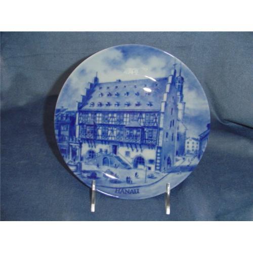 7.7" GERMAN "HANAU" BLUE & WHITE PLATE. SIGNED ON REVERSE - KAISER - W. GERMAN - STADTETELLER. (4.6 OZ)