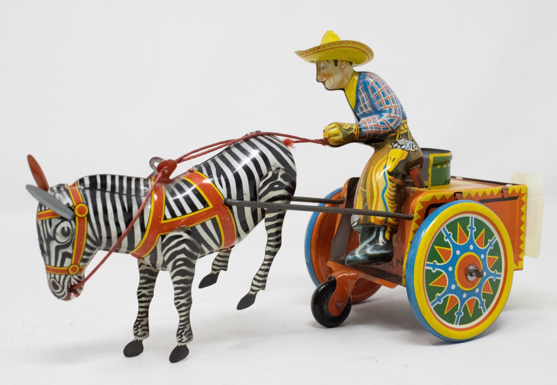 GERMAN MADE ZEBRA CART TIN WIND UP TOY