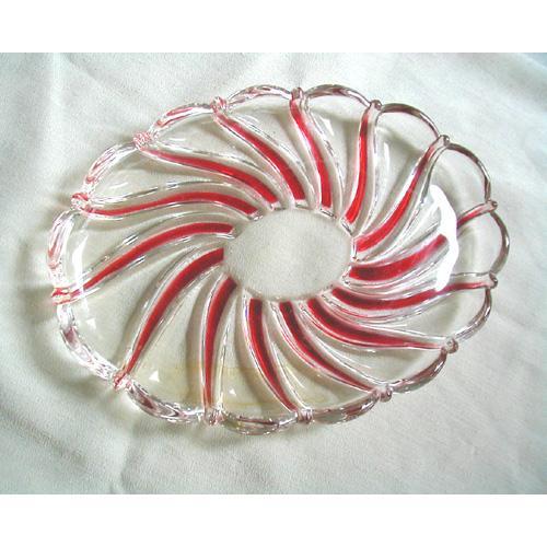 CIRCA 1940'S ~GERMAN BLOWN GLASS OVAL PLATTER with rich deep red swirls and scalloped edging.