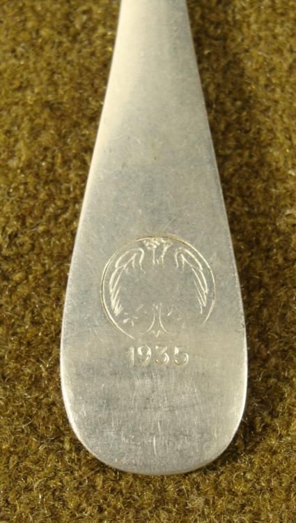 GERMAN MILITARY TEASPOON-DATED 1935 W/IMPERIAL GERMAN EAGLE * TOP OF SPOON ROUNDED OFF *