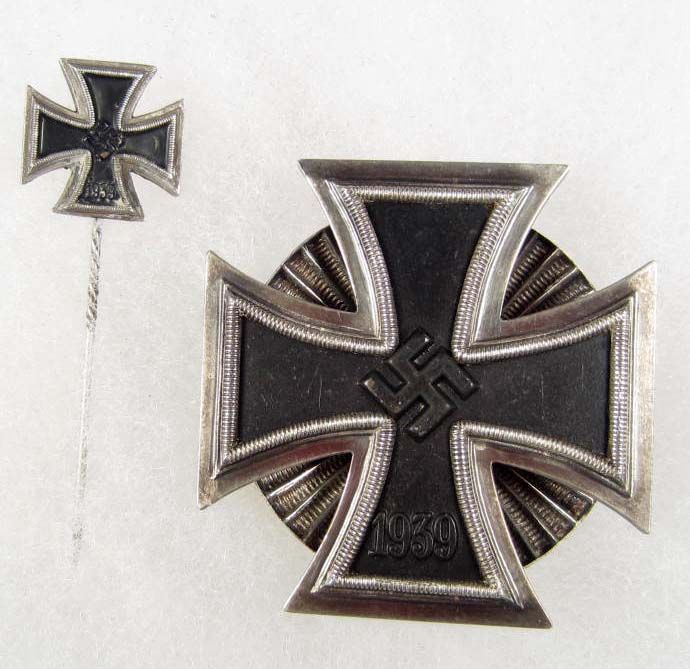 Has a clam shell screw back mount. Three piece construction w/ an iron magnetic center. Includes a 1st Class IC stick pin. Awarded for gallantry in actions.