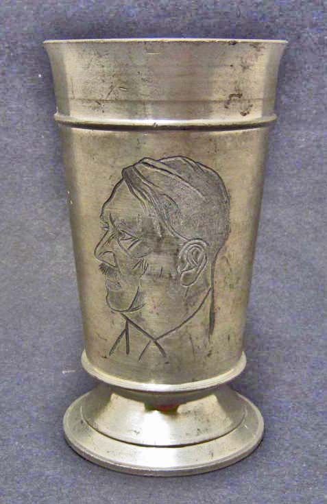 Engraved Hitler profile on side, other side engraved with "D. Sch V. Sch - Ges. Fogal 20.4 1942. Approx 4-3/4" tall.