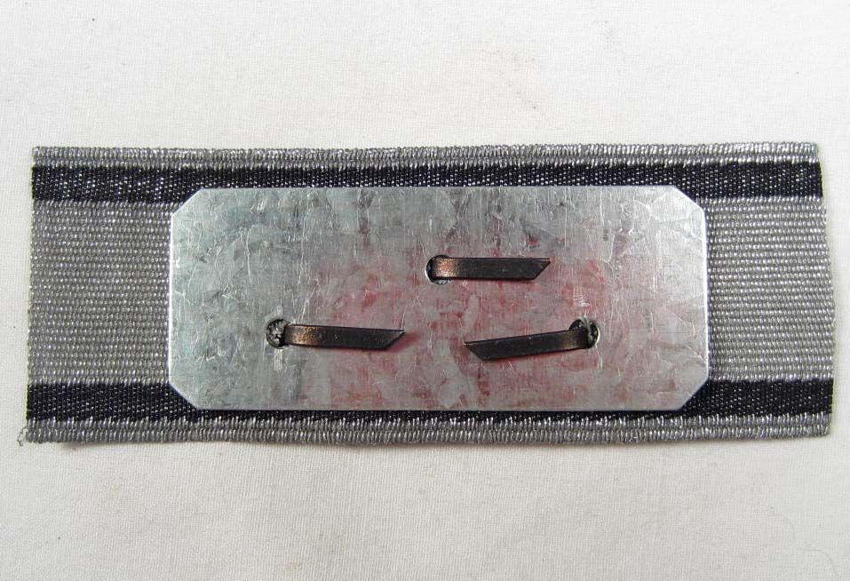 Approx. 1 3/16" by 3 5/16". Has a metal tank and back plate mounted on a flat silver bullion wire strip. Both are magnetic This was awarded for a single tank kill. To have ben worn on the upper left sleeve of the uniform.