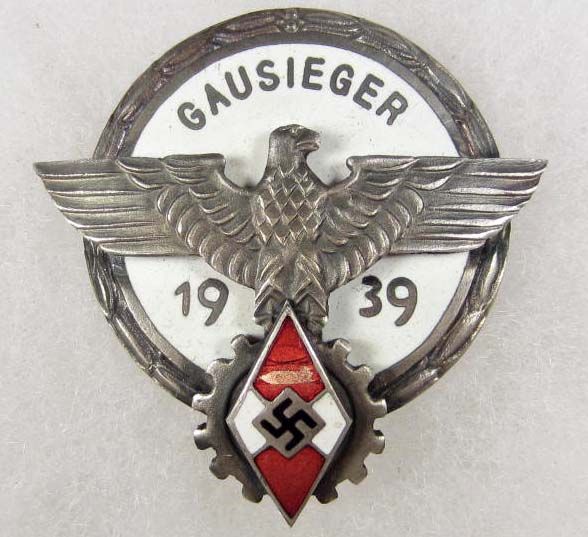 GERMAN NAZI GAUSIEGER 1939 ENAMELED BADGE