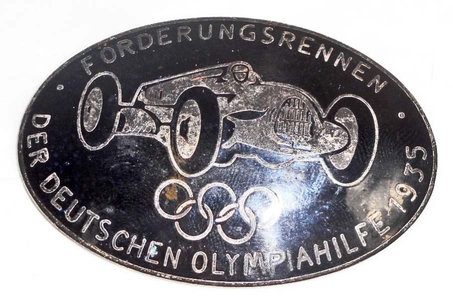 Measures 2 5/16" wide by 1 1/2" tall. The reverse side is maker marked 'ges gesch A Stubbe Berlin'. Has a thin horizontal pin back. Nickel construction with lime black enamel.