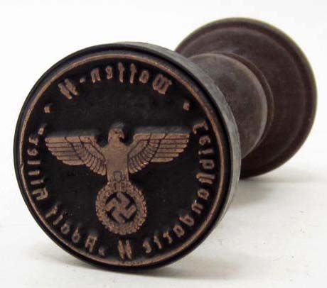 GERMAN NAZI WAX SEAL RUBBER HAND STAMP W/ WOOD HANDLE
