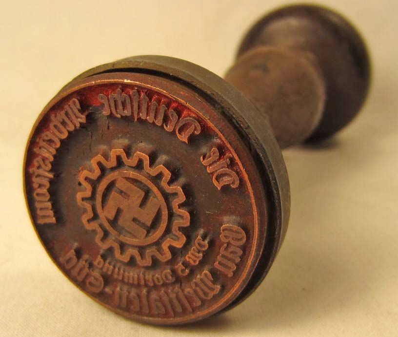 GERMAN NAZI WAX SEAL / RUBBER STAMP W/ WOOD HANDLE