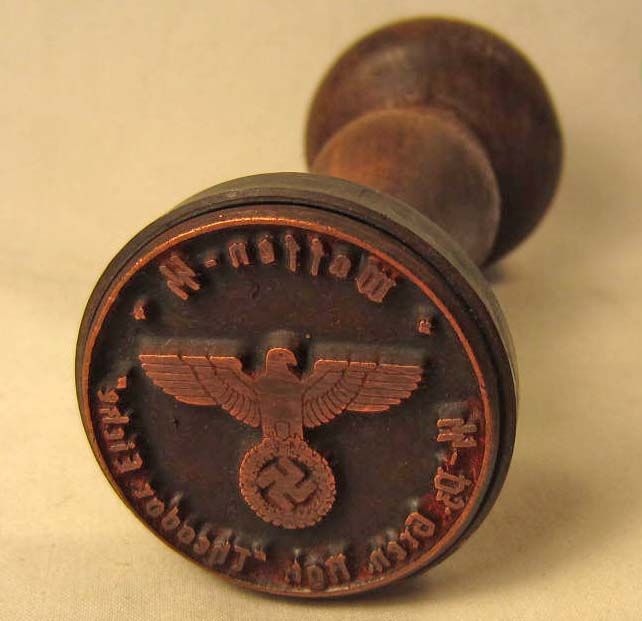 GERMAN NAZI WAX SEAL / RUBBER STAMP W/ WOOD HANDLE