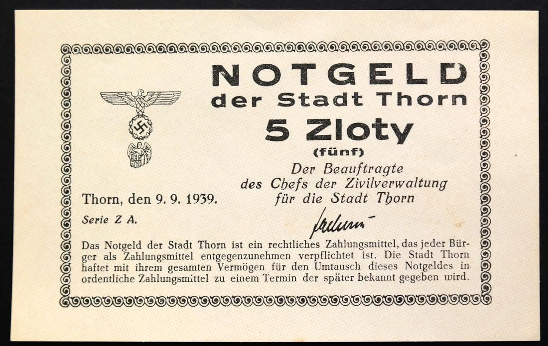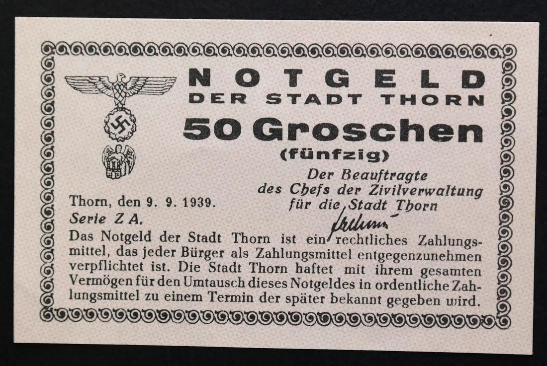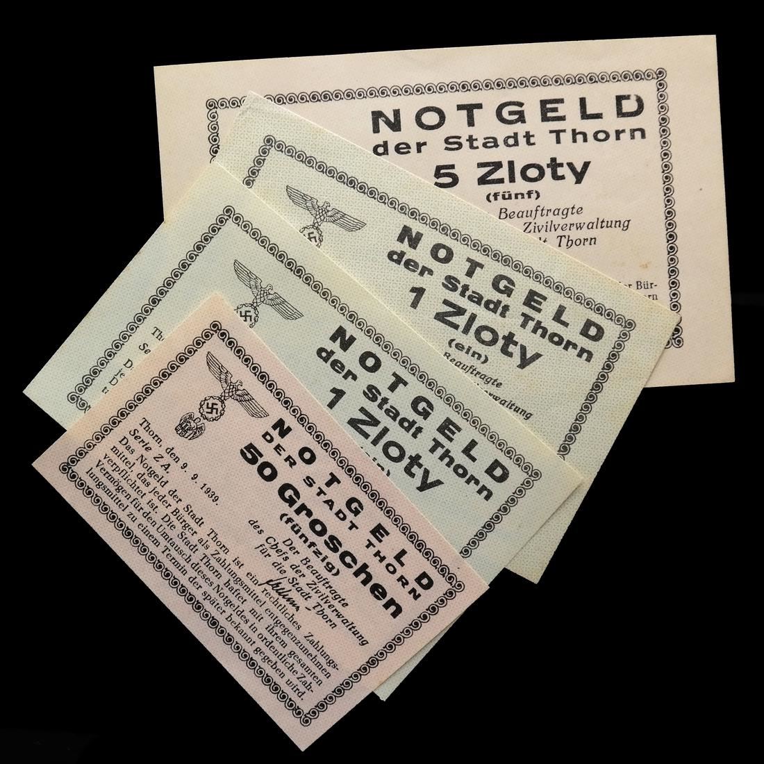Complete set of the 50gr, 1Zl (2) and 5Zl notes issued for the Stadt Thorn prisoner of war camps, sound and About Uncirculated to Uncirculated.