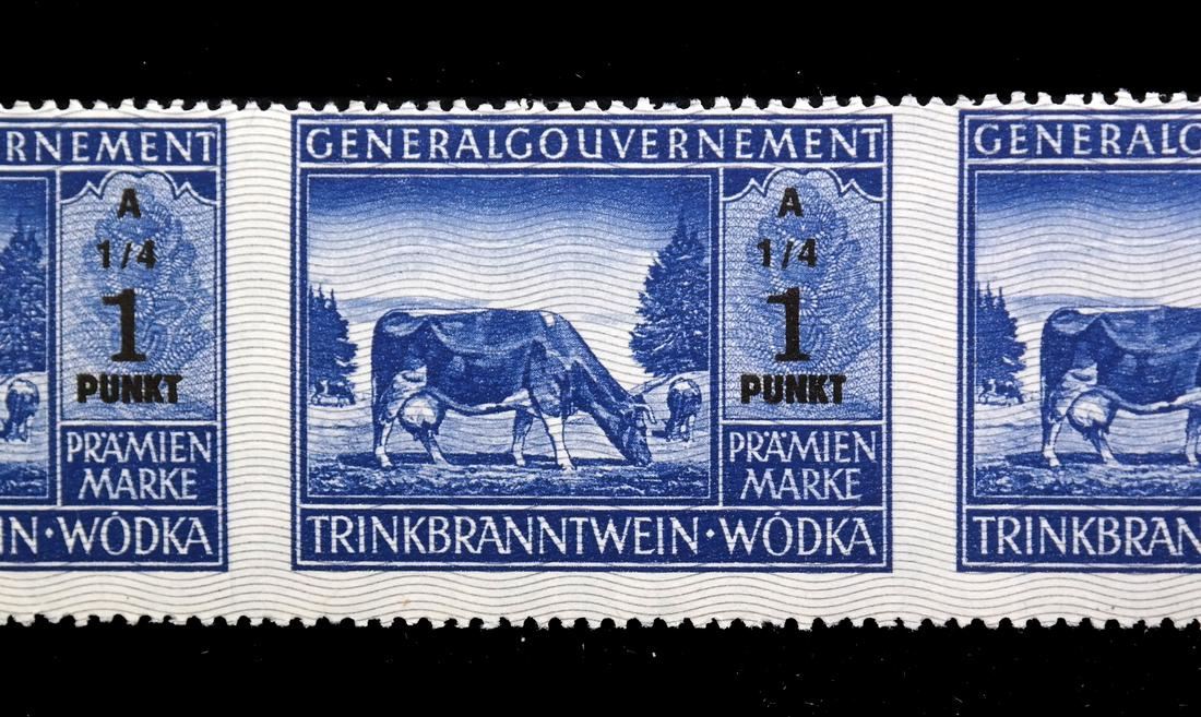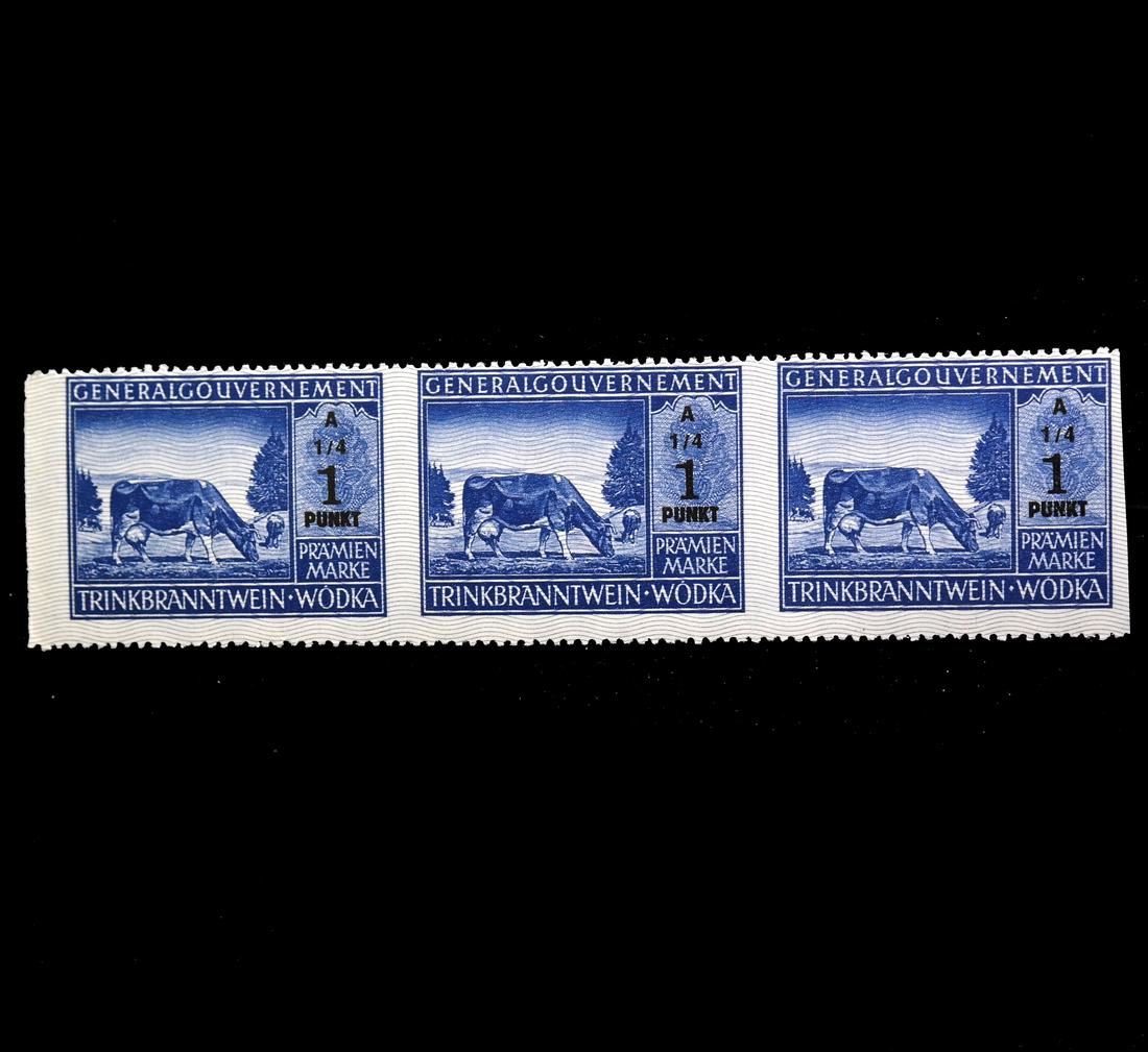 Horizontal strip of three of the 1 Punkt series A 1/4, imperforate vertically, unused without gum as issued, sound and VF.