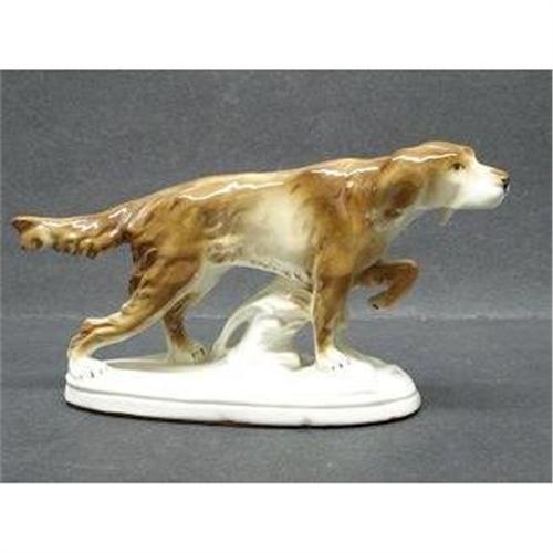 BEAUTIFUL LARGE FIGURINE OF A SETTER DOG, STANDING ON THE PEDESTAL, SIGNED: GERMANY # 6198, IT IS PRE SECOND WORLD WAR FIGURINE, EXCELLENT CONDITION,WITH FABULOUS DETAIL AND COLORING,MEASURING, IMPRESSIVE 4 1/4" HIGH X 7 1/2" LONG, FABULOUS DOG FIGURINE TO PLEASE ANY SERIOUS COLLECTOR,US Buyer to pay 9.00 for shipping plus insurance.THANKS.
