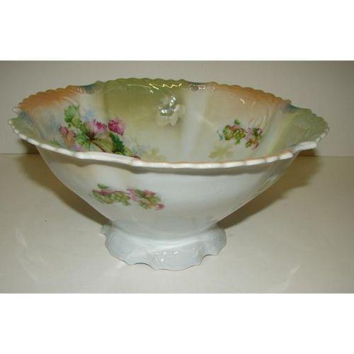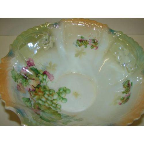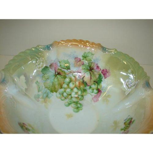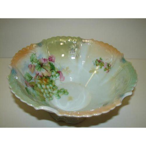 GERMAN PORCELAIN BOWL. Grape and vine decoration on interior and exterior. Marked on bottom “Silesia”. 5” H, 10.25” Dia.