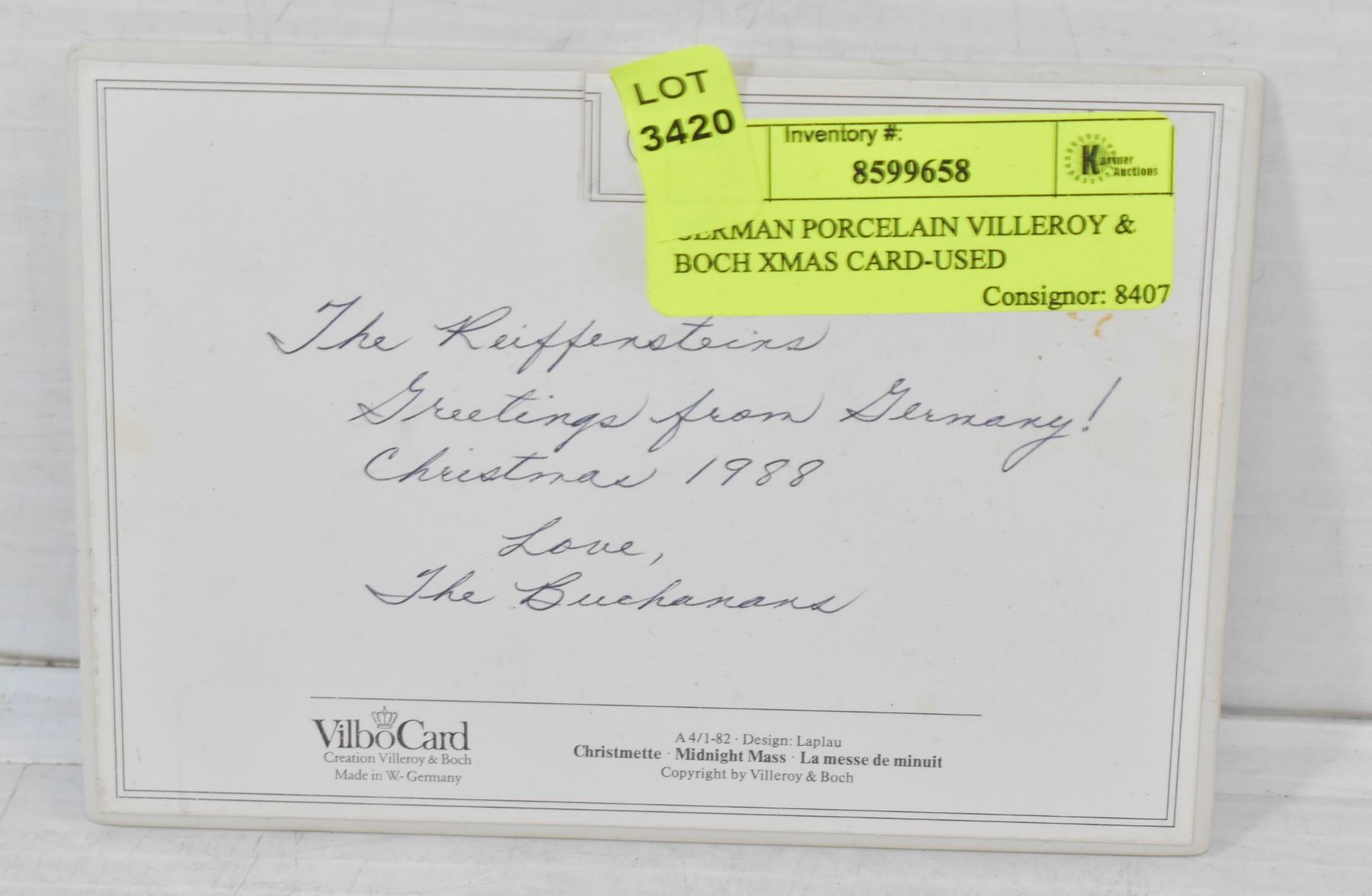 GERMAN PORCELAIN VILLEROY & BOCH XMAS CARD-USED