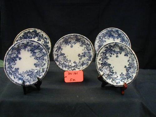GERMAN ROYAL BONN FLO BLUE inHOPSin (5) 5 7/8in BOWLS (3 W/CHIPS ON BACK EDGE 1 W/STRESS CRACK) 5 PCS