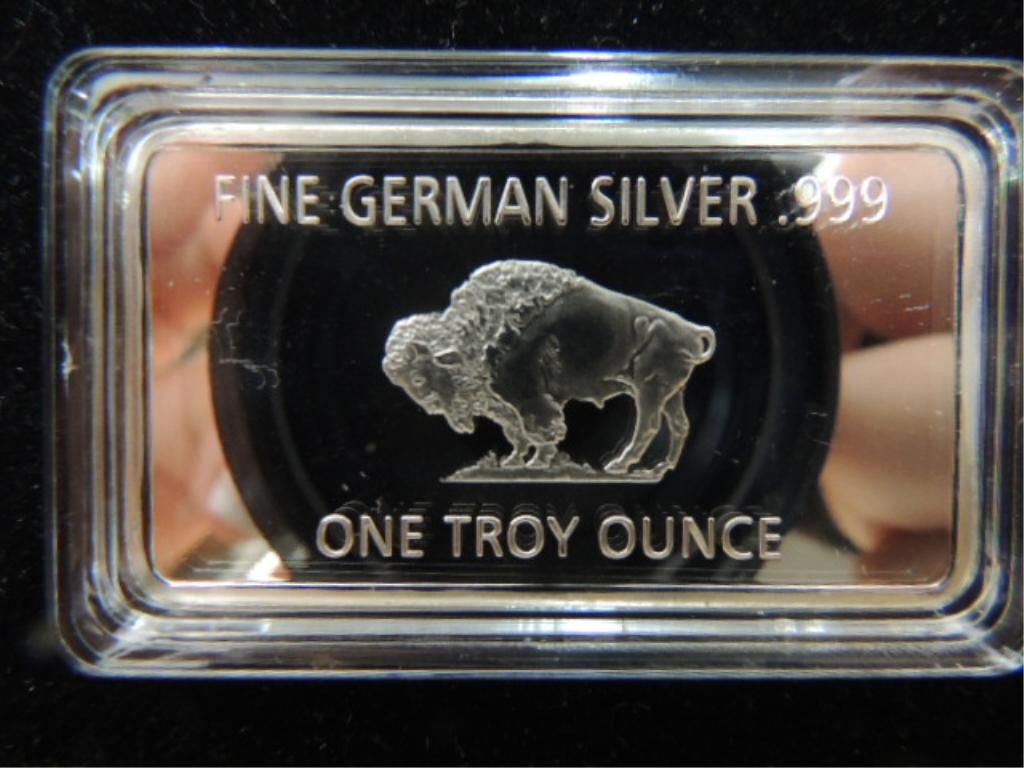 GERMAN SILVER 1 TROY OUNCE BISON BAR. AS SHOWN. SEE PHOTO FOR MORE DETAILS.