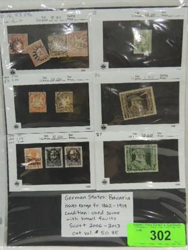 GERMAN STATE BAVARIA SCOTTS #10 - 205, 1862 - 1919. LOT 12 STAMPS. CONIDITION USED. CV $50.85. AS SHOWN. VIEWPICTURE FOR DETAIL.