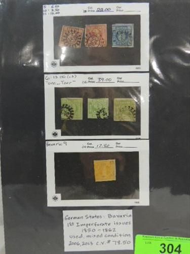 GERMAN STATE BAVARIA SCOTTS# 5 - 11, 1850 - 1862. 1ST IMPERFORATE ISSUE. CONDITION USED. CV $78.50. AS SHOWN. VIEW PICTURE FOR DETAIL.