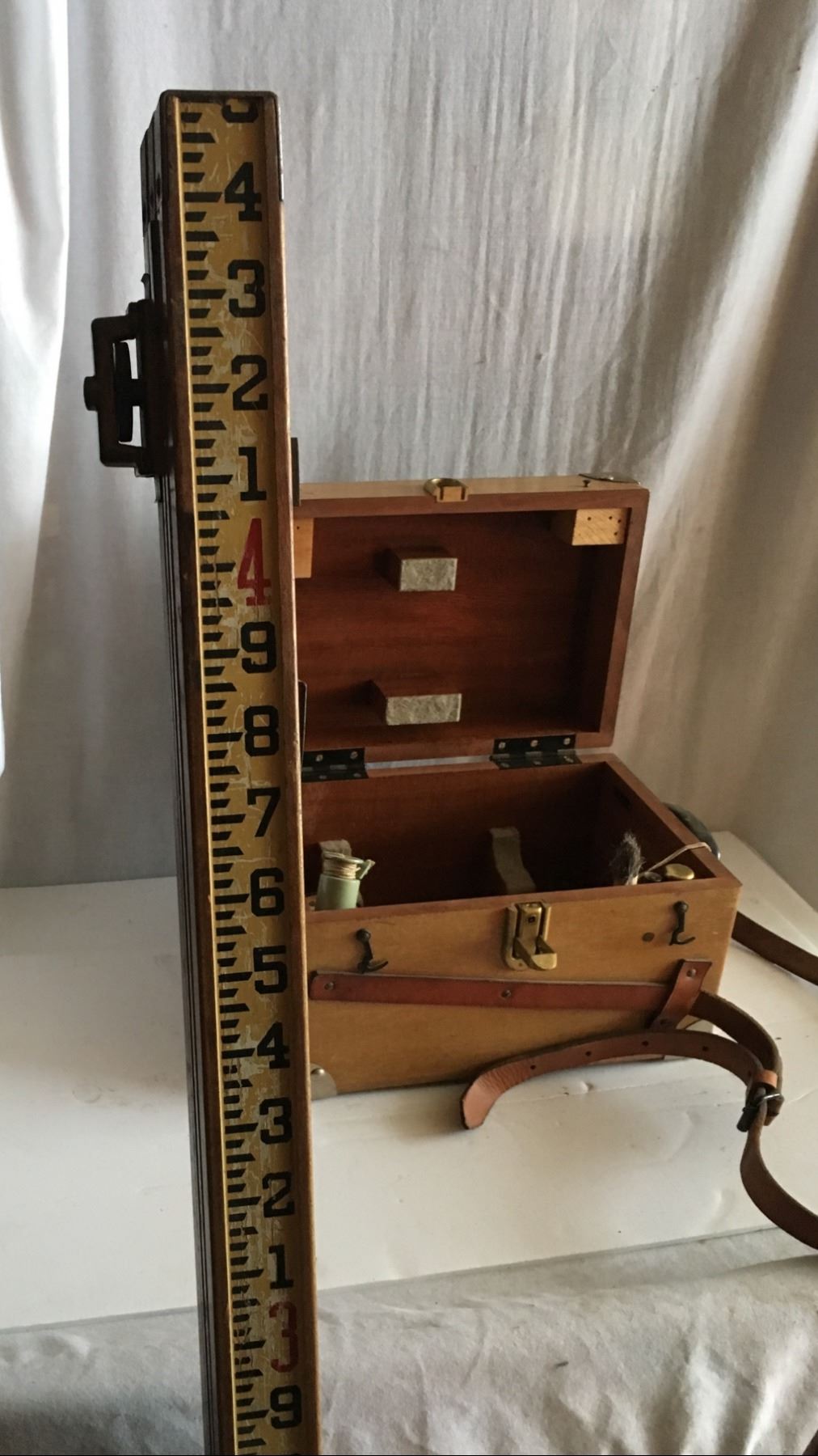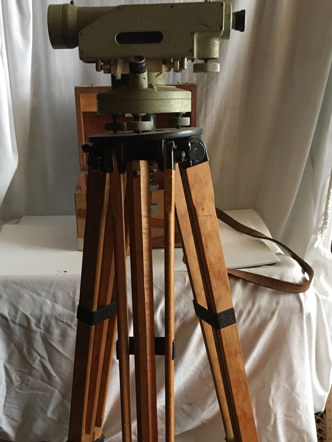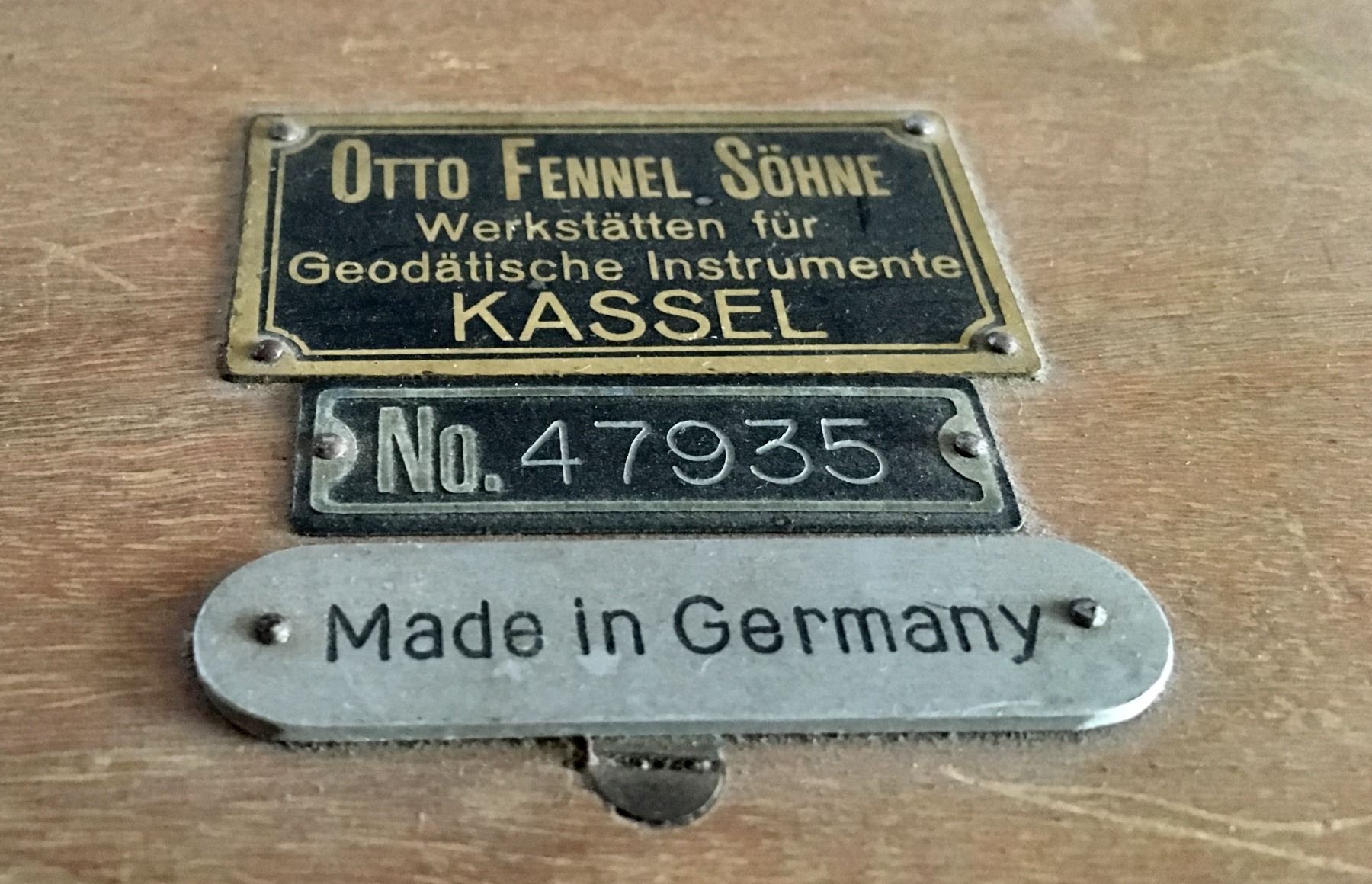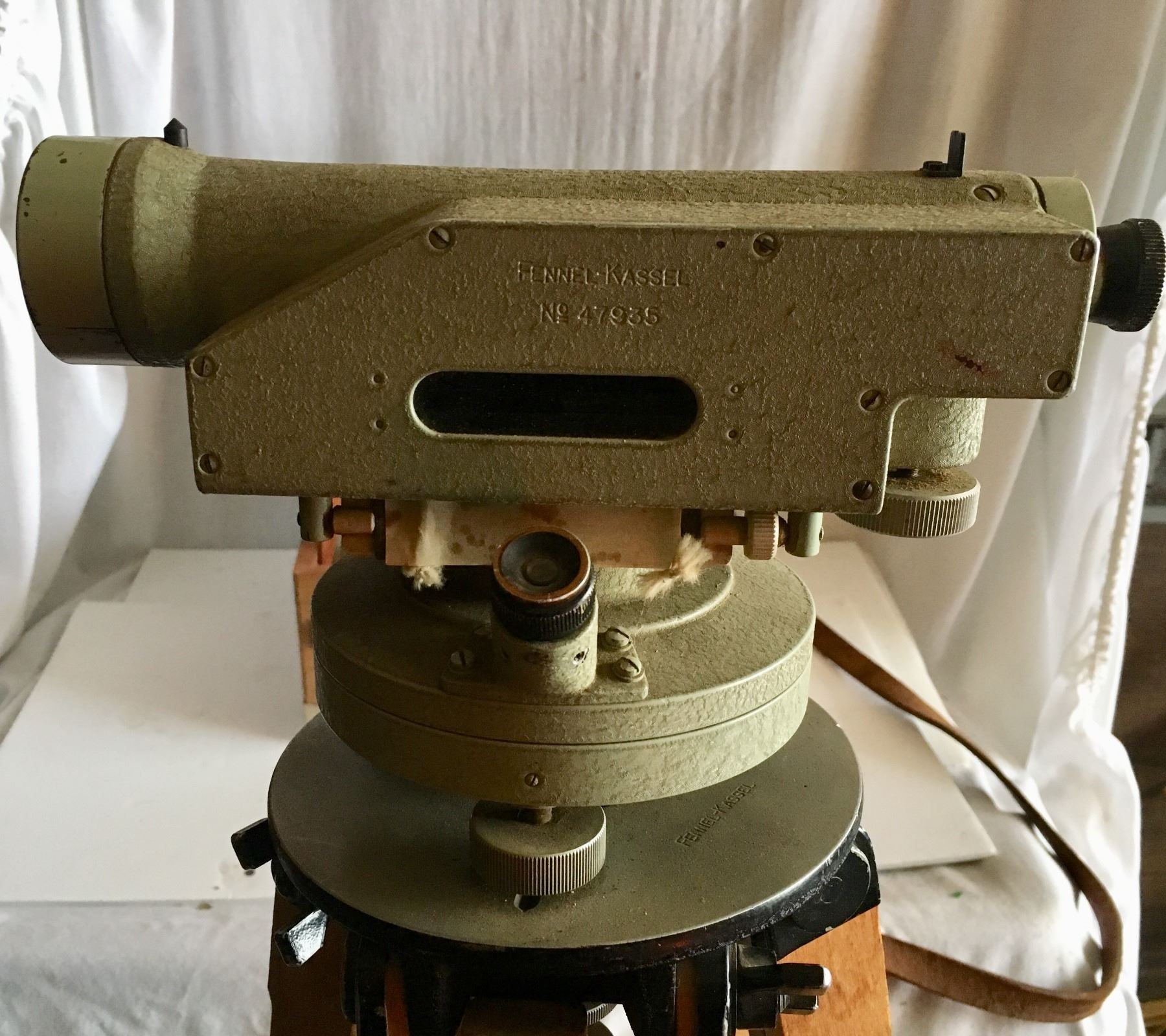 GERMAN SURVEY EQUIPMENT, OTTO FENNEL 'KASSEL' MODEL, INCLUDES TRIPOD, MEASURE STICK, CASE, ACCS