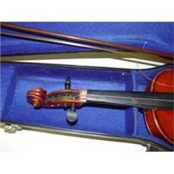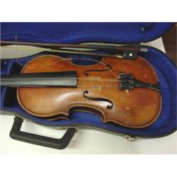 GERMAN VIOLIN WITH CASE. Condition is poor. Label on inside reads "A. Schroeffer-Made in Germany".